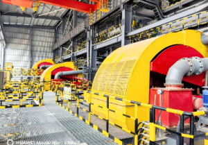 The concentrator adapts the large-particle pre-selection and tailings disposal process. After fine crushing (-6mm) and LIMS for iron weak magnetic separation, the tailings are further processed by SLon VPHGMS, followed by the “rougher-scavenger-cleaner” process. With a TiO2 grade of approximately 4%, the concentrates with a grade of 12% can be obtained. The strong magnetic separation tailings grade is controlled below 3%, laying the foundation for subsequent flotation optimization. This process marks the first application of three SLon-5000 VPHGMS, promoting the large-scale development of coarse-particle separation equipment.